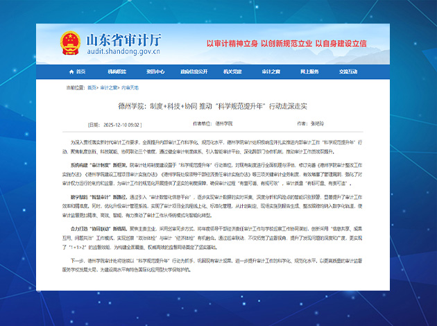 01-12【山东省审计厅】德州学院:制度+科技+协同 推动“科学规范提升年”行动走深走...