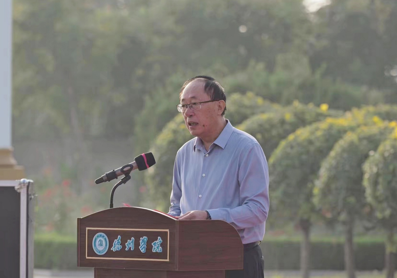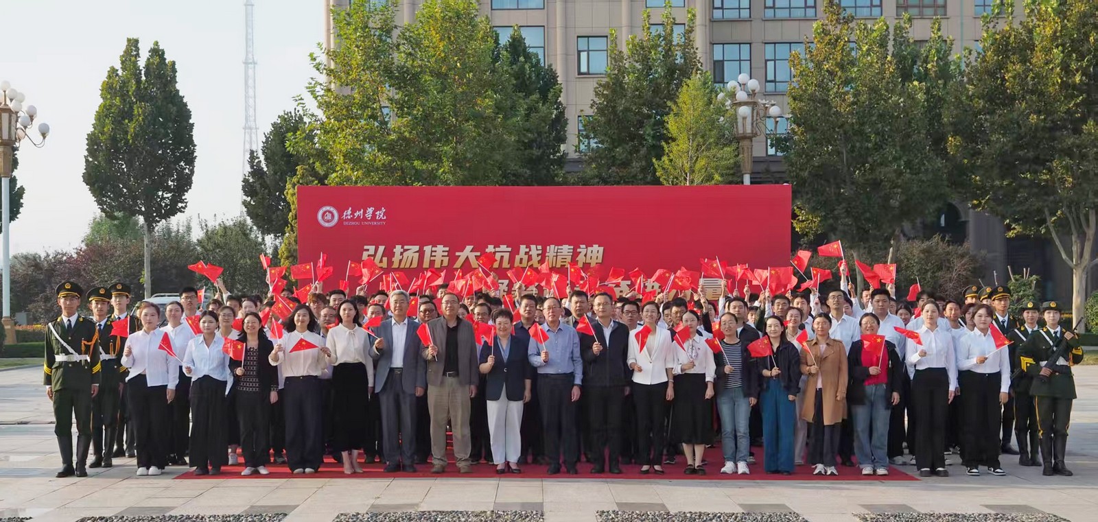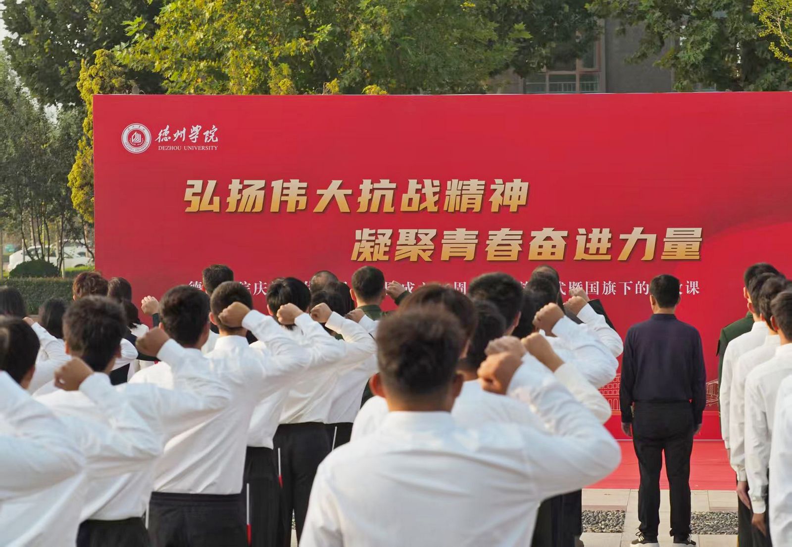 为纪念中国人民抗日战争暨世界反法西斯战争胜利80周年,弘扬伟大抗战精神,庆祝中华人民共和国成立76周年,10月1日上午7时,“弘扬伟大抗战精神 凝聚青春奋进力量”德州学院国庆升旗仪式暨国旗下的思政课举行,通过爱国主义教育强化学生家国情怀。校党委副书记张存峰,党委委员、副校长蒋涛涛,党委委员、宣传部部长冯琨出席活动。