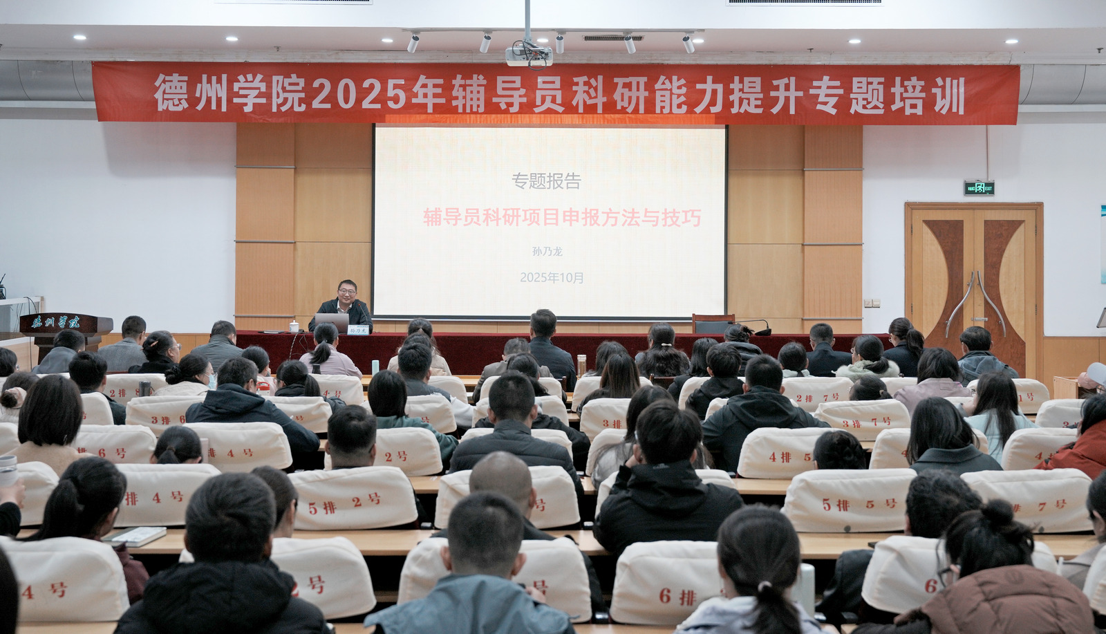 为加强辅导员队伍建设,推动思政工作与科研能力深度融合,10月20日下午,我校在厚德楼四楼报告厅举办2025年辅导员科研能力提升专题培训。校党委委员、副校长蒋涛涛出席并讲话,社会科学处处长、马克思主义学院院长孙乃龙教授应邀作专题辅导。