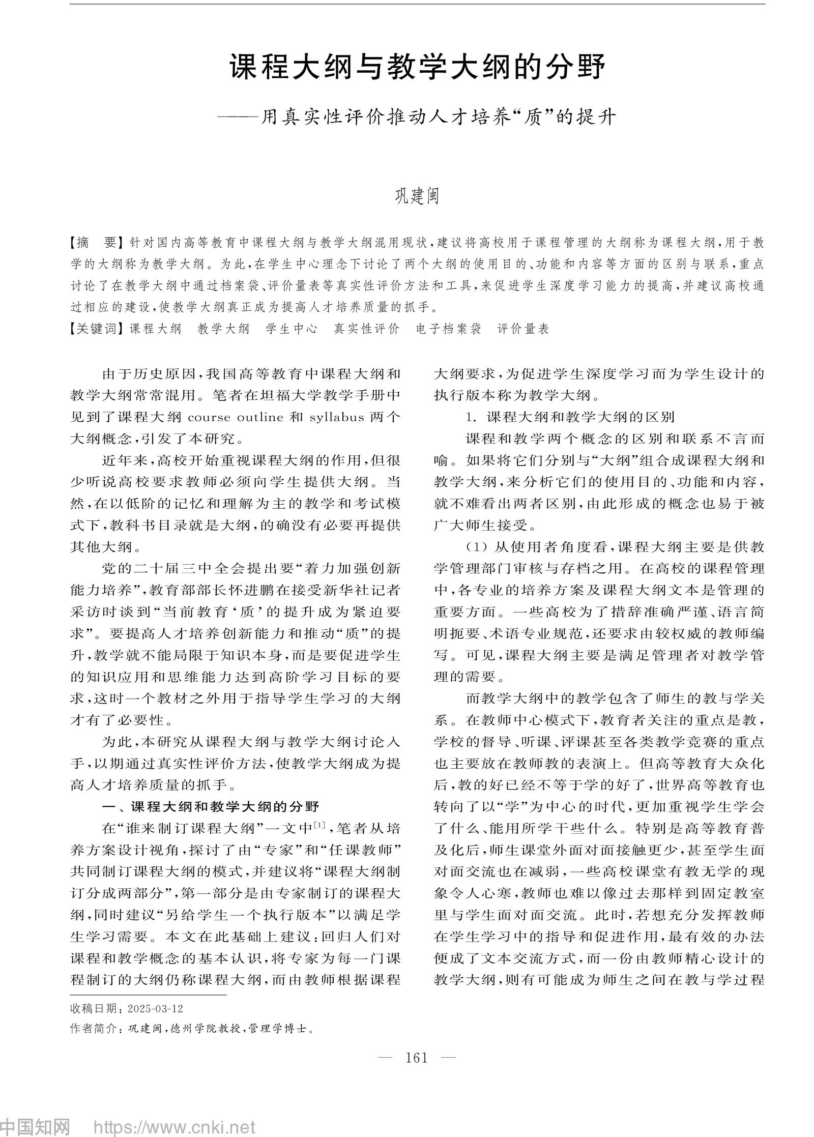 近日,德州学院原副校长、管理学博士巩建闽教授在《高等工程教育研究》2025年第五期发表了题为《课程大纲与教学大纲的分野——用真实性评价推动人才培养“质”的提升》的学术论文。作为退休老干部,巩教授长期致力于高等教育改革与人才培养研究,此次论文从课程大纲与教学大纲的差异入手,提出通过真实性评价推动学生深度学习,为提升高等教育质量提供了新思路。