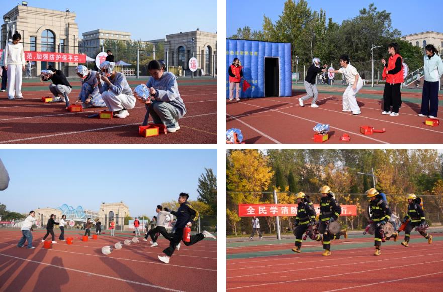 随后举行的第二届消防运动会,设置了4×50米消防灭火接力、4×20米消防营救接力、百米消防物资运输挑战及消防知识竞答四个项目,集知识性、趣味性和实战性于一体,帮助学生在竞技中掌握灭火、逃生、救援等基本技能。各学院代表队踊跃参赛,现场气氛热烈,充分展现了师生良好的精神风貌与团队协作能力。