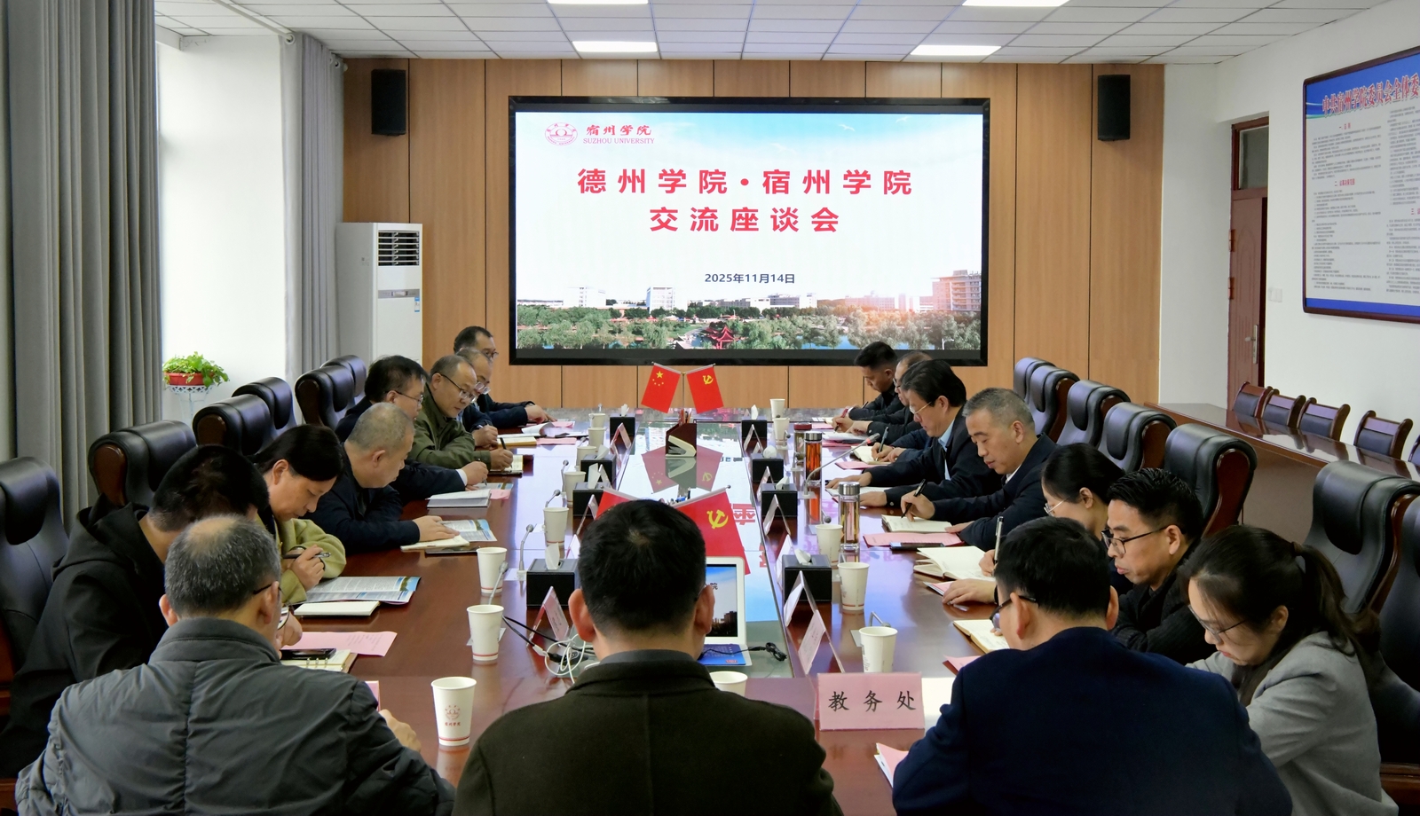 在宿州学院,赵长林一行与校党委书记李红、校长闵杰、副校长王红艳进行了深入交流。李红介绍了宿州学院的历史沿革、办学理念,以及近年来学校结合地域特点和优势产业,深入挖掘历史文化传承,将其转化为服务应用型办学和经济社会发展独特优势的先进经验。闵杰则介绍了学校在聚焦区域经济社会发展需求优化学科专业布局,以及通过建设“五馆一园”文化育人体系,将地方文化元素融入校园环境与课程思政的特色做法。