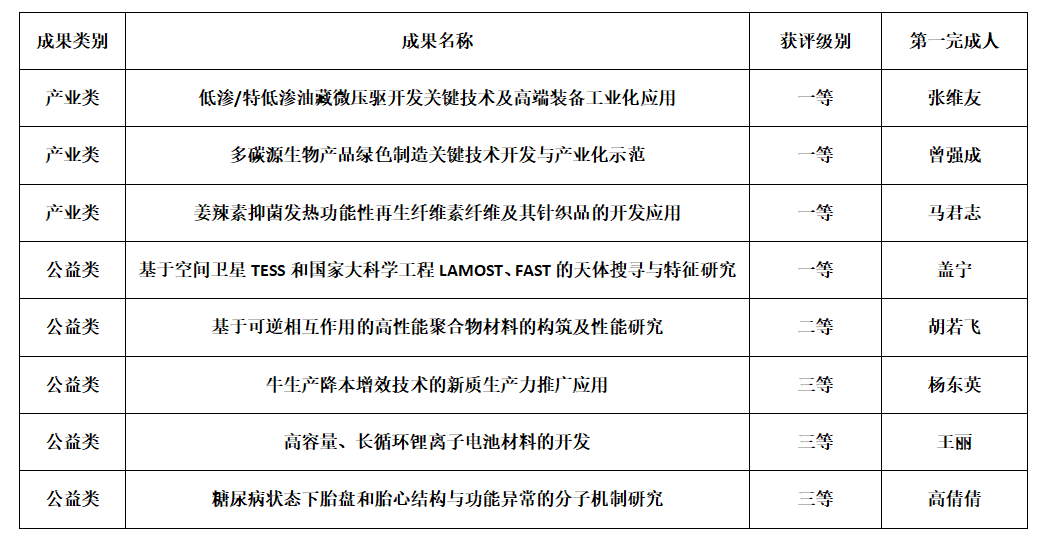 德州市科技创新成果是德州市人民政府设立,旨在推选出在基础研究、发明创造、技术开发与应用、社会公益等领域中涌现出的优秀科技创新成果。我校8项科研成果入选科技创新成果,其中产业类一等成果3项、公益类一等成果1项,公益类二等成果和三等成果分别为1项和3项。