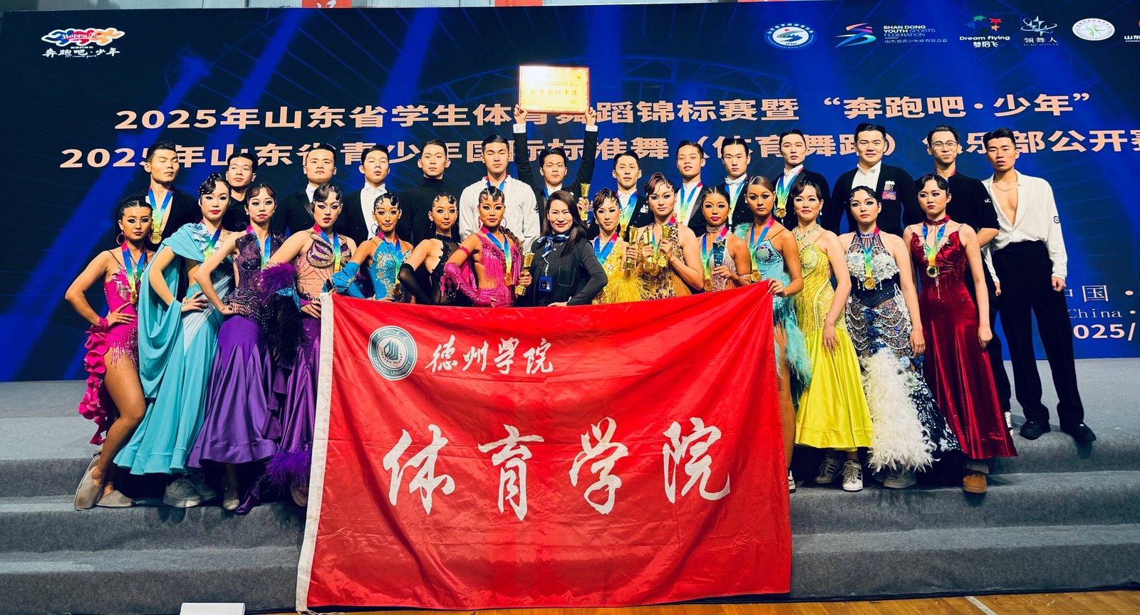 近日,2025年山东省学生体育舞蹈锦标赛在济南落幕。本次赛事由山东省学校体育协会主办,济南市体育舞蹈协会承办,汇聚了北京体育大学、武汉体育学院、西安体育学院等全国30余所高校的1300余名选手同场竞技,赛场角逐激烈,赛事精彩纷呈。