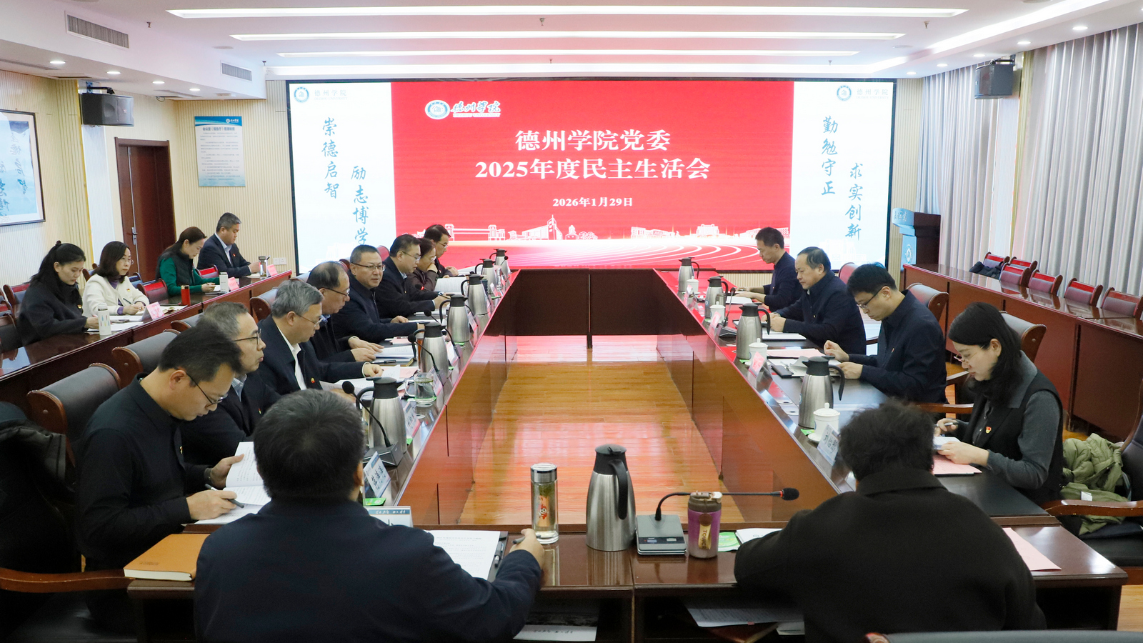 1月29日,校党委在厚德楼第二报告厅召开2025年度民主生活会。省委第三十五督导组到会指导。党委书记吴君主持会议并作总结讲话,学校党委班子全体成员参加会议。