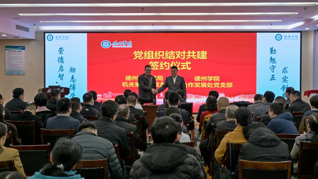 会上,德州市工信局机关第二党支部与德州学院合作发展处党支部举行了结对共建签约仪式,进一步推动党建工作与业务工作深度融合,深化政校协同、产教融合,助力德州市高质量发展。