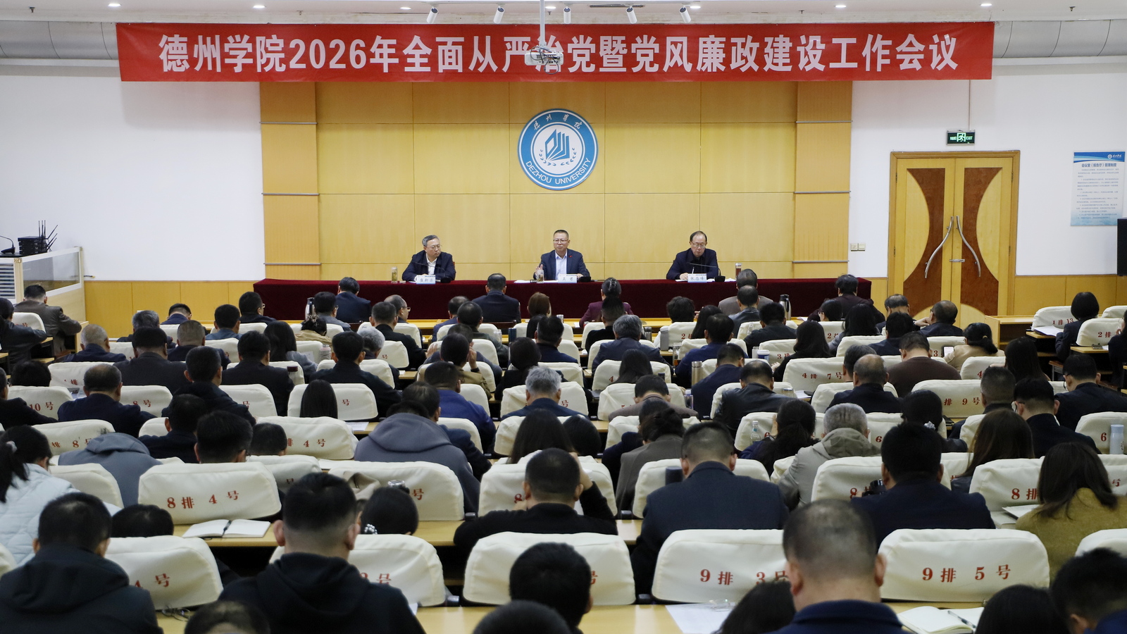 4月1日,学校召开2026年全面从严治党暨党风廉政建设工作会议,学习贯彻习近平总书记关于党的建设、关于党的自我革命的重要思想,贯彻落实二十届中央纪委五次全会和省委关于全面从严治党部署要求,总结2025年工作,部署2026年任务。校党委书记吴君出席并讲话,党委副书记张存峰主持会议并传达上级文件精神,党委委员、纪委书记、省监委驻德州学院监察专员崔新乐作纪检监察工作报告。