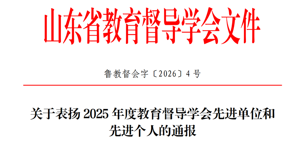 近日,山东省教育督导学会印发《关于表扬2025年度教育督导学会先进单位和先进个人的通报》(鲁教督会字〔2026〕4号),我校获评“2025年度教育督导学会工作先进单位”,张曰云老师获评“山东省教育督导学会工作先进个人”。此外,我校文学与历史文化学院党月异、李莉老师撰写的《PDCA循环理论视域下高校二级学院督导体系的构建探索》获评教育督导工作优秀案例,生态与资源环境学院李肖、赵春宇老师撰写的《撬动教学生态的杠杆点:基于生态系统理论的“三阶耦合”教学督导范式创新与实践》获评典型案例。
