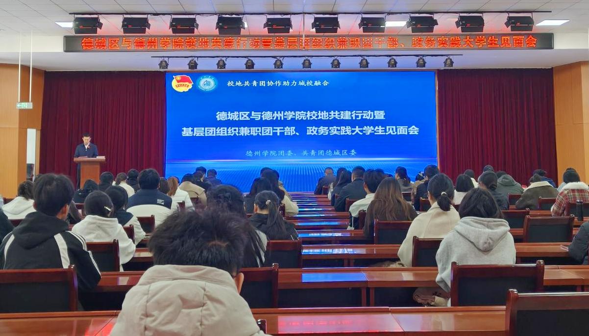 为进一步推动“百万大学生进社区”社会实践工作专业化、品牌化和长效化发展,助推校地共青团城校融合提质增效,实现大学生与社区的“双向奔赴”,引领德院学子走向社会、走向基层,提升社会实践能力。10月18日,校团委联合德城区团委在德城区委党校开展德城区与德州学院校地共建行动暨基层团组织兼职团干部、政务实践大学生见面会。