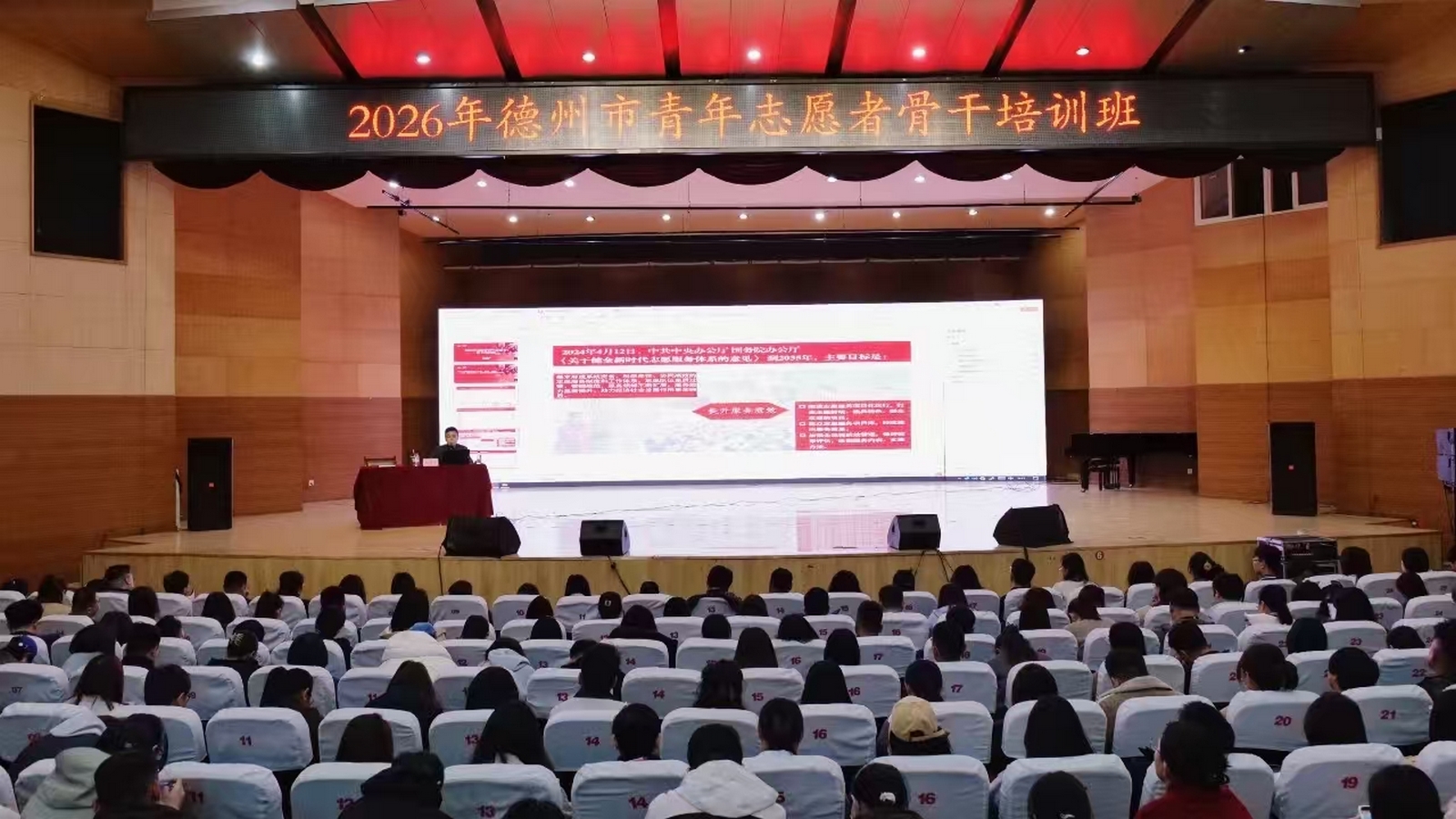 3月28日,团市委、德州学院团委联合举办德州市青年志愿者骨干培训班,团市委、团县委相关负责同志和来自企业、高校等领域的青年志愿服务工作人员、青年志愿服务组织负责人、优秀青年志愿者骨干等200余人参加培训。