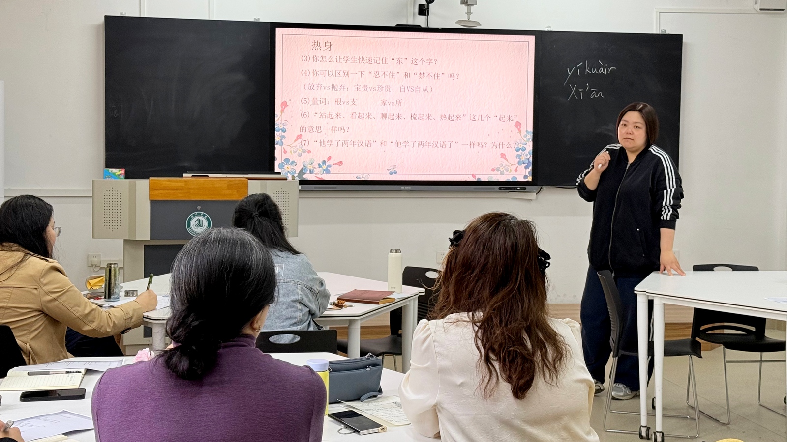 讲座中,李军博士结合自身丰富的教学与研究经验,围绕教师专业发展、教学方法及HSK备考辅导等方面进行了深入细致地指导。面向在校教师,她重点分享了“国际中文教师证书”的备考策略与实操经验,为教师队伍的专业化与规范化建设提供了清晰指引;面向留学生教学,她深入剖析了各级别HSK考试的难点与备考重点,分享了切实可行的辅导方案,为提升留学生考试通过率提供了宝贵的教学思路。