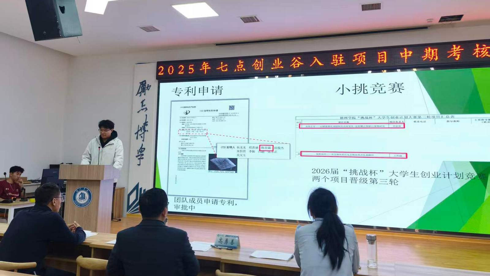 考核采取“PPT汇报+现场考察”相结合的方式进行,项目汇报在七点创业谷路演厅举行。各项目负责人围绕项目建设、成果产出、经费使用及未来规划等方面进行了汇报。项目汇报结束后,双创学院相关负责人及评委深入各项目实验室开展现场考察,听取了团队现场讲解,实地查看项目运行情况及阶段性成果,对项目存在的问题和改进方向提出了中肯的建议。